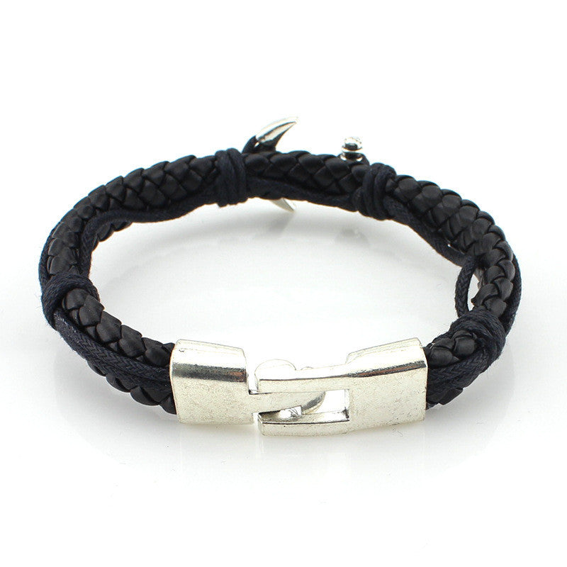 Anchor Braided Leather Bracelet